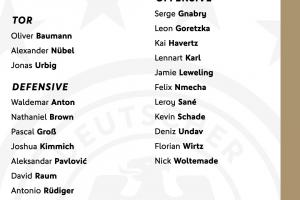 后卫:安东、布朗、格罗斯、基米希、帕夫洛维奇、劳姆、吕迪格、施洛特贝克、斯塔赫、塔、佳夫、瓦格诺曼