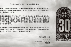 生化危机初代发售30周年 卡普空发布寄语:向大家致以诚挚的感谢