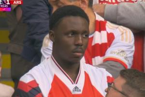 体育资讯04月20日讯 阿森纳vs曼城,补时阿森纳仍然落后,镜头切给看台的阿森纳球迷。